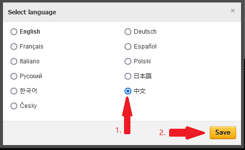 打开网页并移到底部,按照图片提示完成语言设置